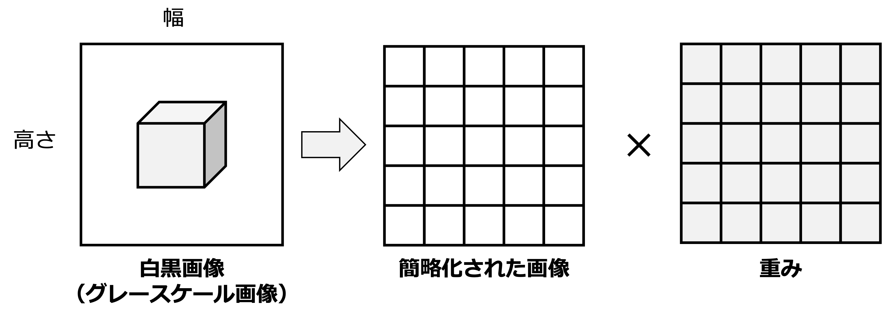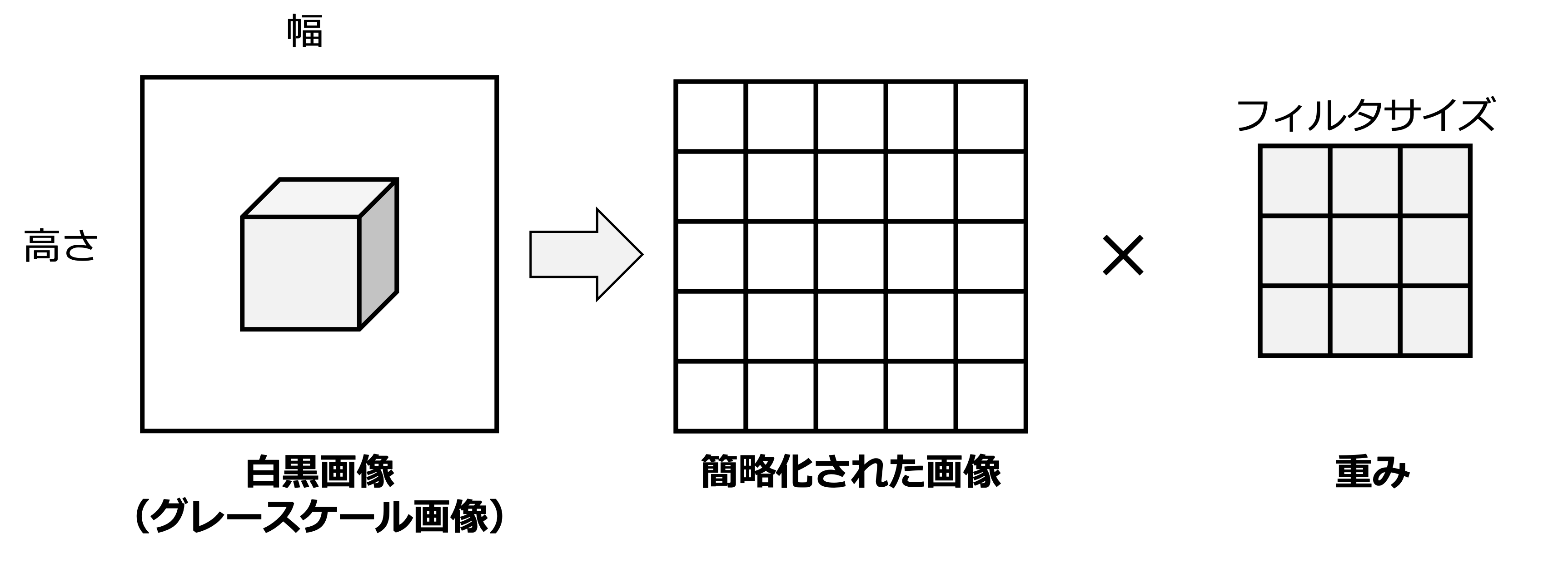 となり,どの位置で計算しても同じ重みとバイアスが使われるようになる.このような重み共有化はパラメータ数の削減と 位置不変性 をCNNにもたらす.位置不変性とは,入力に含まれる物体が並行移動したとしても,出力が変わらないような性質である.